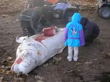Tikiġaġmiut, Iñupiat que vive en la costa de Alaska, dividió su captura en 10 secciones. La cola grasosa, considerada la mejor parte, fue para el capitán del barco conquistador, mientras que las secciones menos deseadas fueron entregadas a su tripulación y otros que ayudaron con la matanza.[21][30]