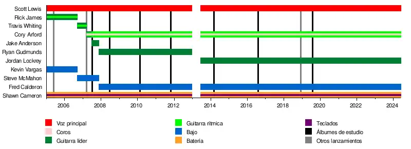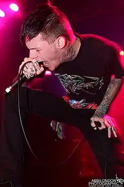 ![]() Vocalista Scott Lewis durante la gira Never Say Die! en Londres, Inglaterra en 2009. | ||