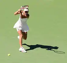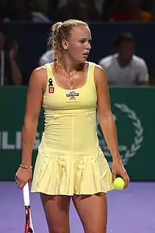 Caroline Wozniacki (danés: [kʰɑːoliːnə ʋʌsniˈɑɡ̊i], polaco: /vɔʑˈɲat͡skʲi/ Odense, 11 de julio de 1990) es una jugadora de tenis profesional danesa, ex número uno del mundo en el ranking de la WTA. Campeona del Abierto de Australia 2018 tras derrotar a la entonces N.º. 1 del mundo Simona Halep. Luego de este torneo recupera el número 1. Fue finalista del Abierto de los Estados Unidos en dos ocasiones; en 2009 fue derrotada por la belga Kim Clijsters y en 2014 por la estadounidense Serena Williams.[5] En 2017 alcanzó el torneo de fin de año WTA Finals venciendo en la final a Venus Williams (esta fue su segunda definición, habiendo perdido previamente ante Clijsters en 2010). Ha sido ganadora de 30 títulos, entre ellos también destacan los prestigiosos torneos de Indian Wells, Montreal, Dubái, Pekín y Tokio. En diciembre de 2019 anunció que se retiraría del tenis profesional en 2020 después de competir en Melbourne.[6]