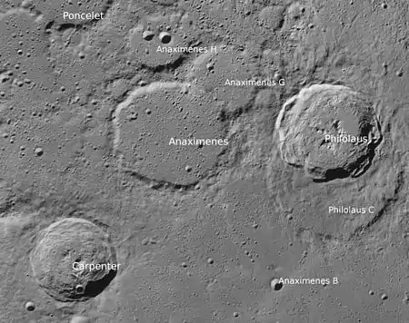 Por convención estos elementos son identificados en los mapas lunares poniendo la letra en el lado del punto medio del cráter que está más cerca de Carpenter.
