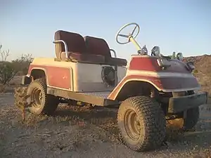Un carrito de golf es un pequeño vehículo originalmente diseñado para llevar a dos golfistas y sus palos de golf a través de un campo de golf o en los senderos del desierto con menos esfuerzo que caminar.
