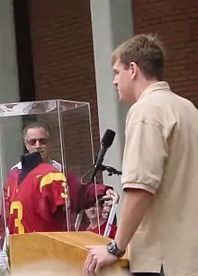 Carson Palmer llegó a la Universidad del Sur de California (USC) en 1998, e inmediatamente compitió por el puesto titular de quarterback con Mike Van Raaphorst. Van Raaphorst ganó, pero debido a su mal juego, Palmer se convirtió en el titular, en el noveno juego de la temporada, convirtiéndose en el segundo novato en ser quarterback titular en los USC Trojans.