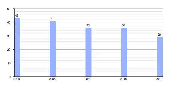 | Gráfica de evolución demográfica de Cartea entre 2000 y 2019 |
