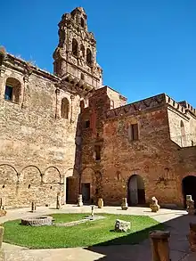 Siguiendo el eje de entrada al recinto, y distanciado de él, se encuentra el núcleo fundamental del conjunto. Éste se compone de una iglesia y tres claustros con las distintas dependencias y cronologías.