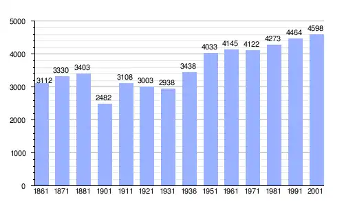 | Gráfica de evolución demográfica de Casal Velino entre 1861 y 2001 |