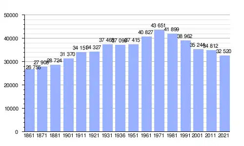 | Gráfica de evolución demográfica de Casale Monferrato entre 1861 y 2021 |