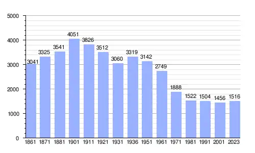 | Gráfica de evolución demográfica de Casalino entre 1861 y 2023 |