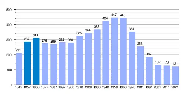 | Gráfica de evolución demográfica de Casas de Guijarro[3] entre 1842 y 2021 |