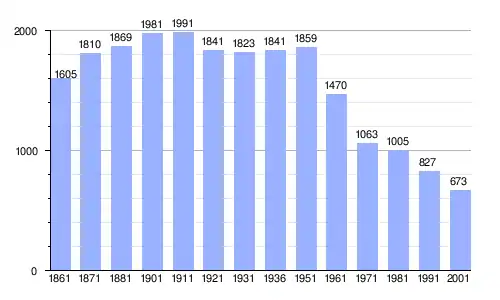 | Gráfica de evolución demográfica de Castellino del Biferno entre 1861 y 2001 |