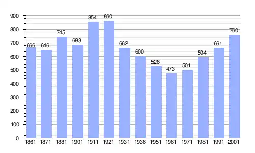 | Gráfica de evolución demográfica de Castiglione d'Intelvi entre 1861 y 2001 |