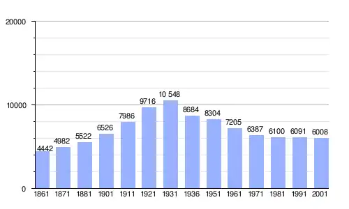 | Gráfica de evolución demográfica de Castiglione dei Pepoli entre 1861 y 2001 |
