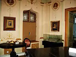 - Sala 2- Sala de estar con los retratos de los miembros de la familia pintados en medallones en las paredes de la habitación.