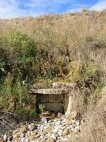 En su lado norte, aún se aprecia la depresión en la que debió de existir una cava o foso que protegía al castillo por este flanco. También se conservan varios manantiales a lo largo de la colina. Incluso uno de ellos presenta una serie de sillares formando una fuente en lado oriental, cerca de la Torre de la Iglesia de los Santos Justo y Pastor, como menciona Tomás López en 1788, probablemente uno los manantiales o agüero que le dio nombre al castillo.