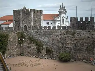 ![]() Vista de las fortificaciones de la muralla y la entrada, con una vista de la Catedral de la Sé | ||