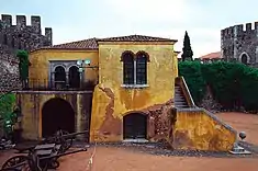 Desde estas puertas se accede a la Plaza de armas que comunica con las otras fortificaciones de la muralla, entre ménsulas, y la otra abierta al norte.[1] En el interior, adosada a las murallas norte y este, se encuentra la Casa del Gobernador, de dos plantas. La residencia tiene una chimenea en el primer piso con entrada rasgada por aberturas en arco, una que da acceso a la barbacana al norte, que incluye ventanas en el segundo piso.[1]