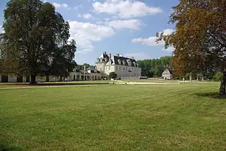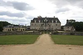 Una gran terraza llena de barandillas que datan del siglo XVIII limitan la fachada principal. El palacio y los comunes, así como el patio de los jardines, el parque y el canal que lo corre están clasificados como monumento histórico por el decreto del 11 de julio de 1975.[1]
