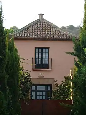 Los cuerpos laterales son de cubierta de vigas de madera a dos aguas y constan de planta baja y buhardillas. En el acceso del jardín posterior se alza una escalinata, con barandilla de hierro, al pie de la cual se encuentran dos leones de piedra. Encima el dintel de esta puerta hay un relieve de un cabo romano, posible resto de una obra anterior.