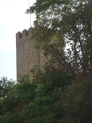 ![]() Reconstrucción de uno de los torreones alzado sobre sus restos. El edificio también aparecía en el antiguo escudo de la ciudad | ||
