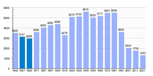 | Gráfica de evolución demográfica de Castrelo de Miño[5] entre 1842 y 2021 |