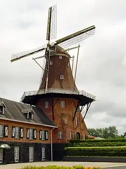 "De Immigrant" (El Inmigrante), molino de estilo holandés en la colonia de Castrolanda. | ||||