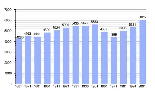 | Gráfica de evolución demográfica de Castrocaro Terme e Terra del Sole entre 1861 y 2001 |