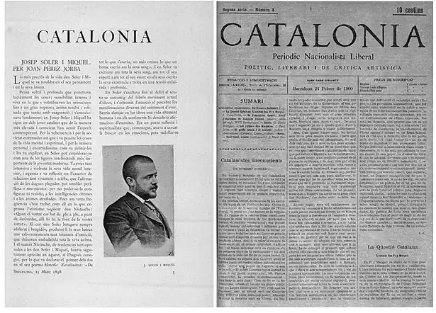 Baste recordar que la revista Catalònia fue contrapuesta a otra revista, Bethel, defensora enconada de la corriente simbolista y decadentista, oponiéndose frontalmente al ideario político y filosófico de la primera.[15][3]