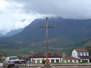 Plaza de la Principal con Sierra del Caraça al fondo.