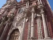 Una de las últimas obras levantadas durante el virreinato, por lo que muestra de la transición entre dos estilos: del barroco al neoclásico. Ocupa el acabado del exterior material de cantera y tezontle.