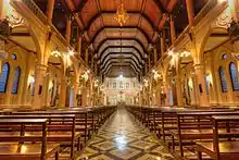 El templo es visible desde casi toda la ciudad, fue inaugurada formalmente en 1909[3] como una de la iglesia católicas más grandes construidas en esa nación[4] sobre una estructura previa de más de 300 años.[5] Fue construida en estilo gótico[6] durante los 10 años de ocupación de Francia sobre este territorio aunque quedó inconclusa para ese entonces (1893-1904). Existe una estatua de la Virgen María justo al frente de la Catedral.
