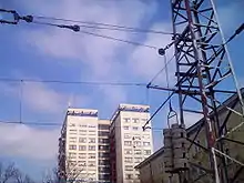 ![]() Postes de madera y línea trifásica en el tren de La Rhune (Francia). |