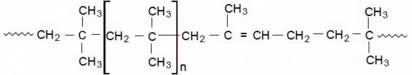 El caucho butílico, a veces llamado simplemente "butilo", es un caucho sintético, un copolímero de isobutileno con isopreno. La abreviatura IIR significa caucho de isobutileno e isopreno. El poliisobutileno, también conocido como "PIB" o poliisobuteno, (C4H8)n, es el homopolímero de isobutileno, o 2-metil-1-propeno, en el que se basa el caucho butílico. El caucho butílico se produce por polimerización de alrededor del 98% del isobutileno con alrededor del 2% del isopreno. Estructuralmente, el polisobutileno se parece al polipropileno, pero tiene dos grupos metilo sustituidos en cada uno de los otros átomos de carbono, en lugar de uno. El polisobutileno es un material viscoelástico incoloro a amarillo claro. Generalmente es inodoro e insípido, aunque puede exhibir un ligero olor característico.