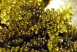 Algunas especies, especialmente Caulerpa lentillifera y Caulerpa racemosa, son conocidas como uva del mar o caviar verde, y tienen un sabor a pimienta. Las Caulerpa se consumen en la cocina de Indonesia, a veces fresca, o cocidas en azúcar. Crecen en la provincia de Cebú, Filipinas, para consumo doméstico, y se exportan a Japón. Reportes no confirmados aseguran que el alcaloide caulerpina encontrado en Caulerpa puede envenenar.