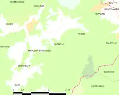 Cazarilh es una población y comuna francesa, situada en la región de Mediodía-Pirineos, departamento de Altos Pirineos, en el distrito de Bagnères-de-Bigorre y cantón de Mauléon-Barousse.