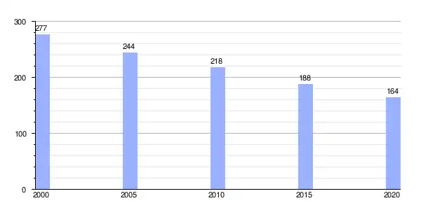 | Gráfica de evolución demográfica de Cedrón entre 2000 y 2020 |