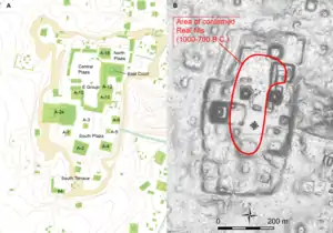 Su ocupación poblacional se remonta al Período Preclásico y se extiende hasta el Clásico Terminal, con un hiato significativo.[2] La fase principal de su ocupación data del Preclásico Tardío (400 a. C. – 200 d. C.), y fue seguida por un declino poblacional en el Clásico Temprano (200 – 600 d. C.).