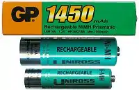 | Batería de níquel-cadmio (Ni-Cd) | Batería de níquel metal hidruro (NiMH) | Batería de ion litio (Li-ion) |