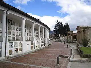 El cementerio central de Bogotá es el cementerio más antiguo y reputado en la ciudad de Bogotá, capital de Colombia.[1] Fue construido por Pío Domínguez y Nicolás León, según los planos de Domingo Esquiaqui y puesto en servicio en 1836 por el gobernador Rufino Cuervo, bajo la presidencia de Francisco de Paula Santander.[2] La portada fue obra de Julián Lombana en 1905,[3] algunos de los mausoleos han sido construidos por reconocidos escultores como Pietro Tenerani y Césare Sighinolfi. El cementerio se encuentra ubicado en el barrio Santa Fe, en la localidad de Los Mártires, frente a la avenida El Dorado con carrera 20. Por su significado histórico, valor arquitectónico y cultural fue declarado monumento nacional por el decreto 2390 del 26 de septiembre de 1984.[4]