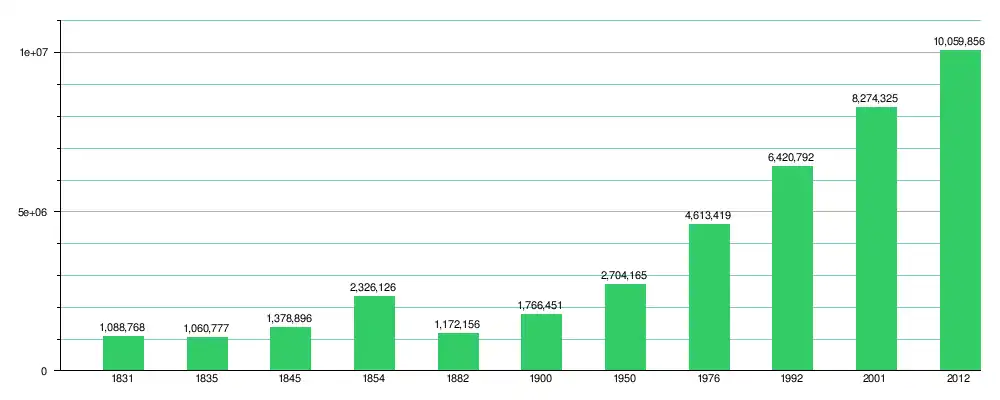 | Total [7] | Entre 2012 y 1912 | 10 059 856 | 100 % | Total [7] | Entre 2001 y 1901 | 8 274 325 | 100 % | ||||||||