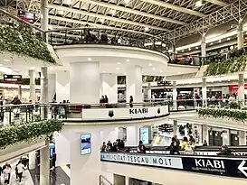 - Tren. Cuando se construyó el complejo comercial se incluyó una estación de tren debajo, prevista para el transporte de pasajeros y mercancías. El proyecto nunca se finalizó y la estación, desde 1980, está abandonada.[5]