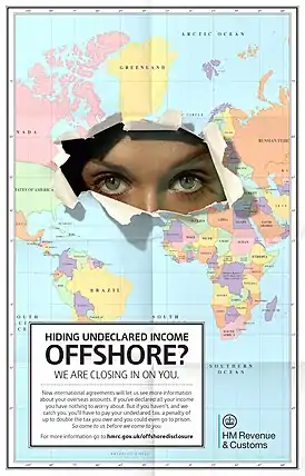 - Evasión de impuestos. Aunque los números son difíciles de determinar, se cree que las personas de las naciones ricas evaden ilegalmente los impuestos al no declarar ganancias de los vehículos que poseen. Las multinacionales, incluidas GlaxoSmithKline y Sony, han sido acusadas de transferir beneficios de las jurisdicciones con impuestos más altos en los que se realizan a centros extraterritoriales libres de impuestos.[41]