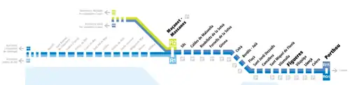 La RG1 se presta como prolongación de la R1 desde Massanet de la Selva hasta Figueras o Portbou, mientras que en la R11 se mantienen todas las frecuencias actuales hasta Barcelona.