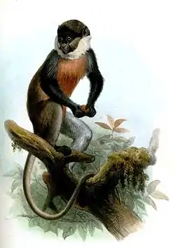El cercopiteco de garganta blanca o cercopiteco de vientre rojo (Cercopithecus erythrogaster) es una especie de primate catarrino perteneciente a la familia Cercopithecidae.[2] Es un animal diurno que vive en zonas de la selva tropical de Nigeria y Benín.