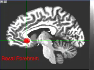 Parte del cerebro humano, las estructuras basales del cerebro anterior están situadas en el cerebro anterior por delante y por debajo del cuerpo estriado. Incluyen los ganglios basales ventrales (incluidos el núcleo accumbens y el pálido ventral), el núcleo basal, la banda diagonal de Broca, la sustancia innominada y el núcleo septal medial. Estas estructuras son importantes en la producción de acetilcolina, que luego se distribuye ampliamente por todo el cerebro. Se considera que el cerebro anterior basal es la principal salida colinérgica del sistema nervioso central (SNC), centrada en la salida del núcleo basal.[1] Se ha descubierto que la presencia de neuronas no colinérgicas que se proyectan a la corteza actúa con las neuronas colinérgicas para modular dinámicamente la actividad en la corteza.[2]