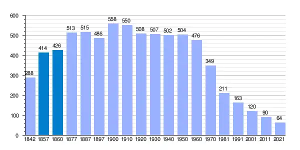 | Gráfica de evolución demográfica de Cerezal de Peñahorcada[8] entre 1842 y 2021 |