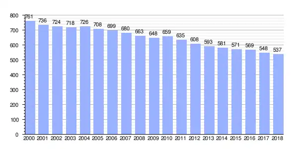 | Gráfica de evolución demográfica de Cerqueda[2] entre 2000 y 2018 |