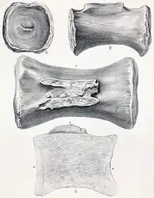 En marzo de 1868, los trabajadores cerca de Bletchingdon descubrieron el fémur derecho de un saurópodo. Entre marzo de 1869 y junio de 1870, el profesor John Phillips , que investigaba más el sitio, en una capa que databa del Batoniano, descubrió tres esqueletos y material óseo adicional. En 1871, basándose en ellos, nombró dos especies: Cetiosaurus oxoniensis que originalmente fue deletreado "Ceteosaurus oxoniensis" y Cetiosaurus glymptonensis. "Oxoniensis" se refiere a Oxford , "glymptonensis" a Glympton.[11] Ya en 1870, Thomas Huxley había publicado una carta de Phillips en la que este último nombraba lo Cetiosaurus giganteus basado en el espécimen OUMNH J13617, un fémur izquierdo encontrado anteriormente en Bletchingdon,[12] ya que la carta no contenía una descripción, este es un nomen nudum.[2]