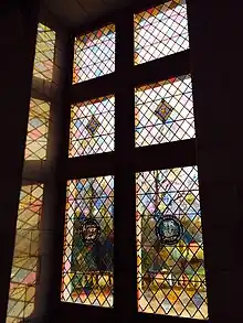 Los vitrales restaurados incluyen: las grandes armas de la Primera Casa de Valois, la fuente de la juventud, la Colacción de la caza (según el libro de caza de Gaston Fébus), un retrato de Carlos VIII ostentando el Collar la Orden de San Miguel (inspirado en una de las pinturas conservadas por el Musée Condé[note 2]) y un retrato ecuestre de Luis XII inspirados en su entrada solemne en Génova en 1507 (a partir de la estatua ecuestre que corona el portal de entrada del ala Luis XII del castillo real de Blois).