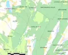 - Situación de Châtel-de-Joux en un mapa de Francia y de comunas limítrofes (enlace roto disponible en Internet Archive; véase el historial, la primera versión y la última). (en francés)