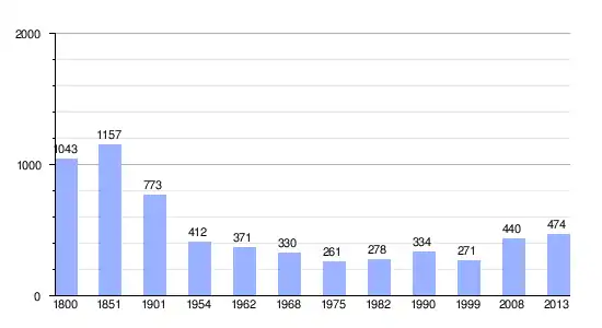 | Gráfica de evolución demográfica de Châtel-en-Trièves entre 1800 y 2013 |