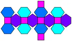 Como todas sus caras tienen un número par de lados con simetría de rotación de 180°, es un zonoedro. También es un poliedro de Goldberg GPIV(2,0) o {4+,3}2,0, que contiene caras cuadradas y hexagonales.